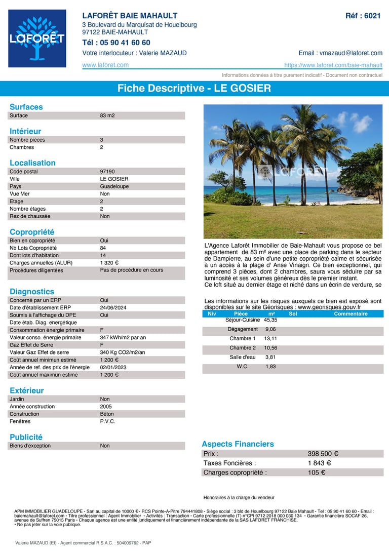 Agence Laforêt Immobilier Baie-Mahault - Bel appartement de 83 m² avec parking - le Gosier