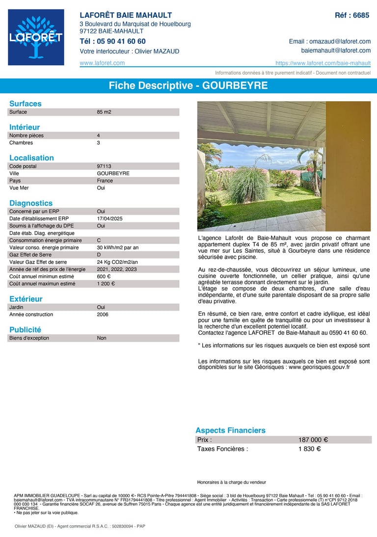 Appartement Duplex T4 avec Vue Mer à Gourbeyre