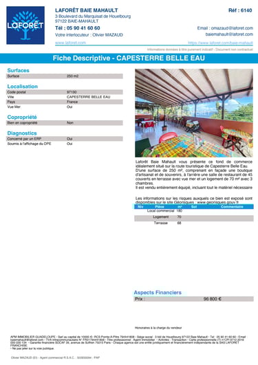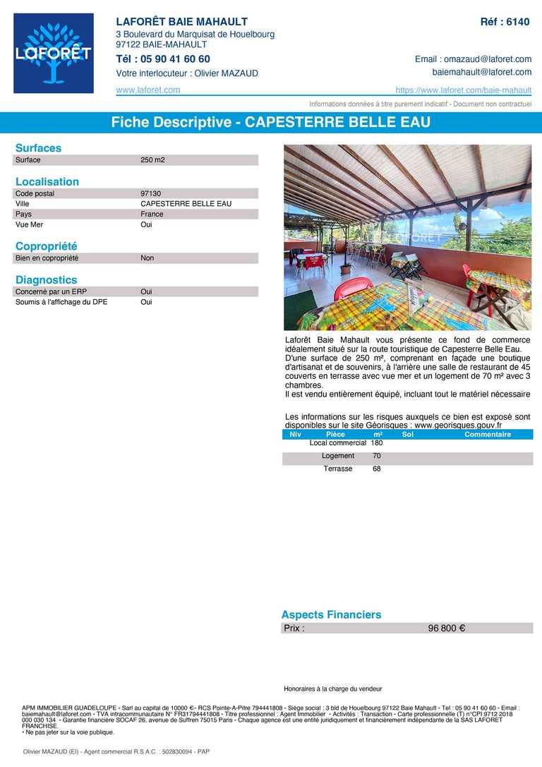 Fond de Commerce avec Restaurant et Terrasse Vue Mer