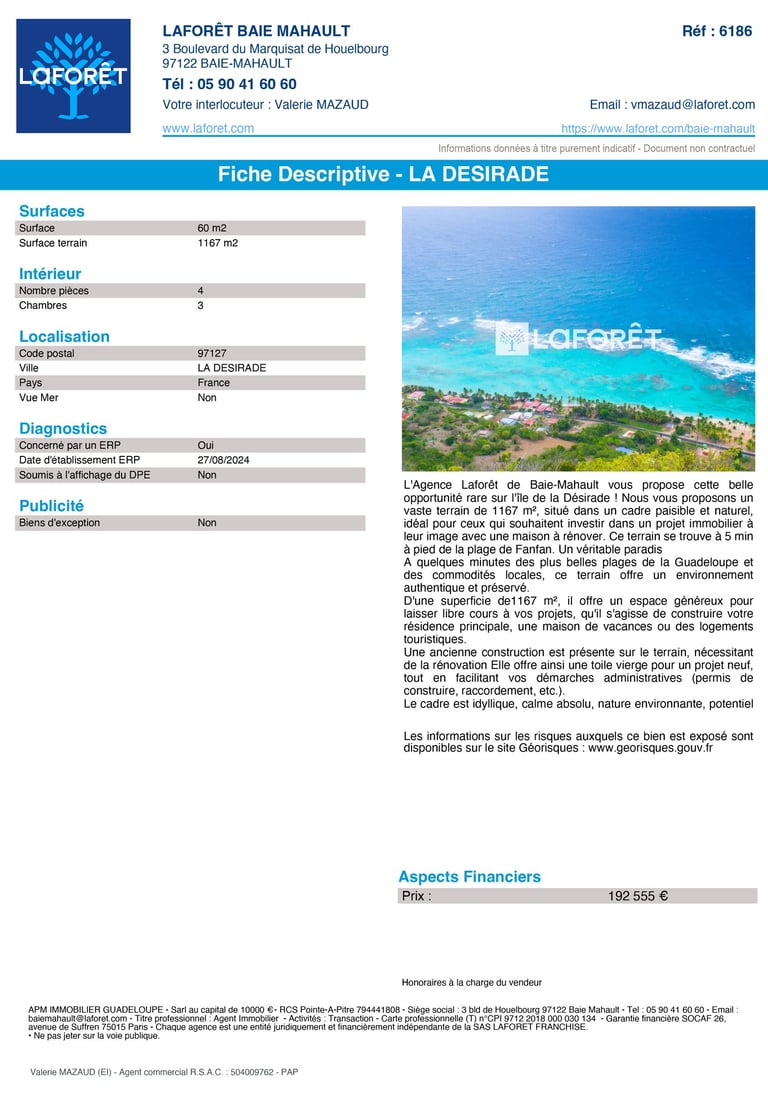 Agence Laforêt Immobilier Baie-Mahault - Terrain à vendre sur l'île de la Désirade