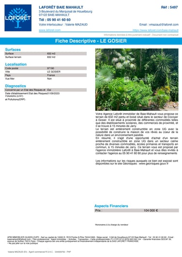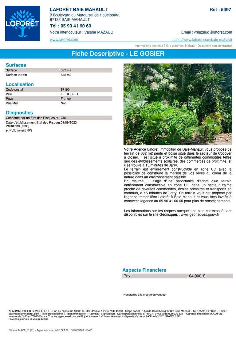 Terrain pentu et boisé à Cocoyer, Gosier | Agence Laforêt immobilier Baie-Mahault