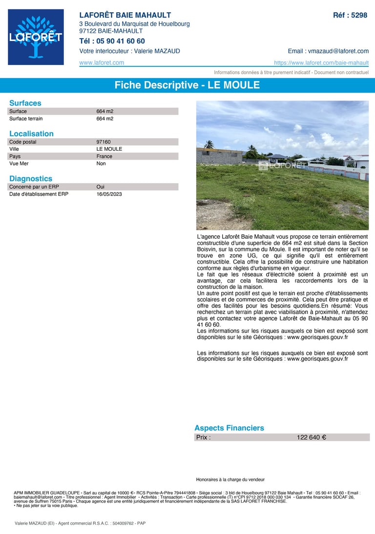Terrain constructible de 664m2 sur la commune du Moule - Agence Laforêt Baie Mahault