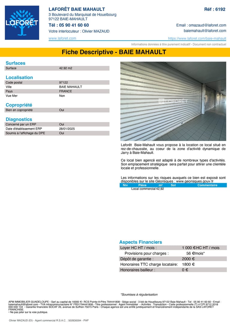 Location Local à Baie-Mahault - Zone d'Activité - Agence Laforêt