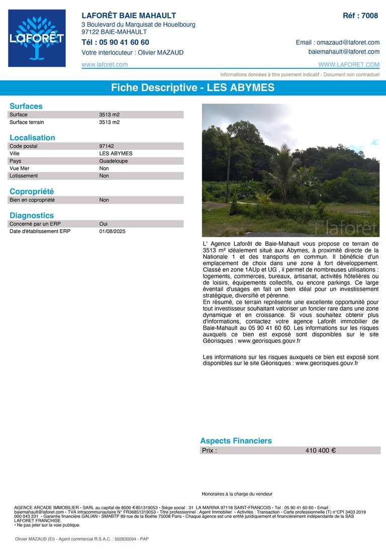 Agence Laforet Baie Mahault - Terrain 3513m2 Les Abymes