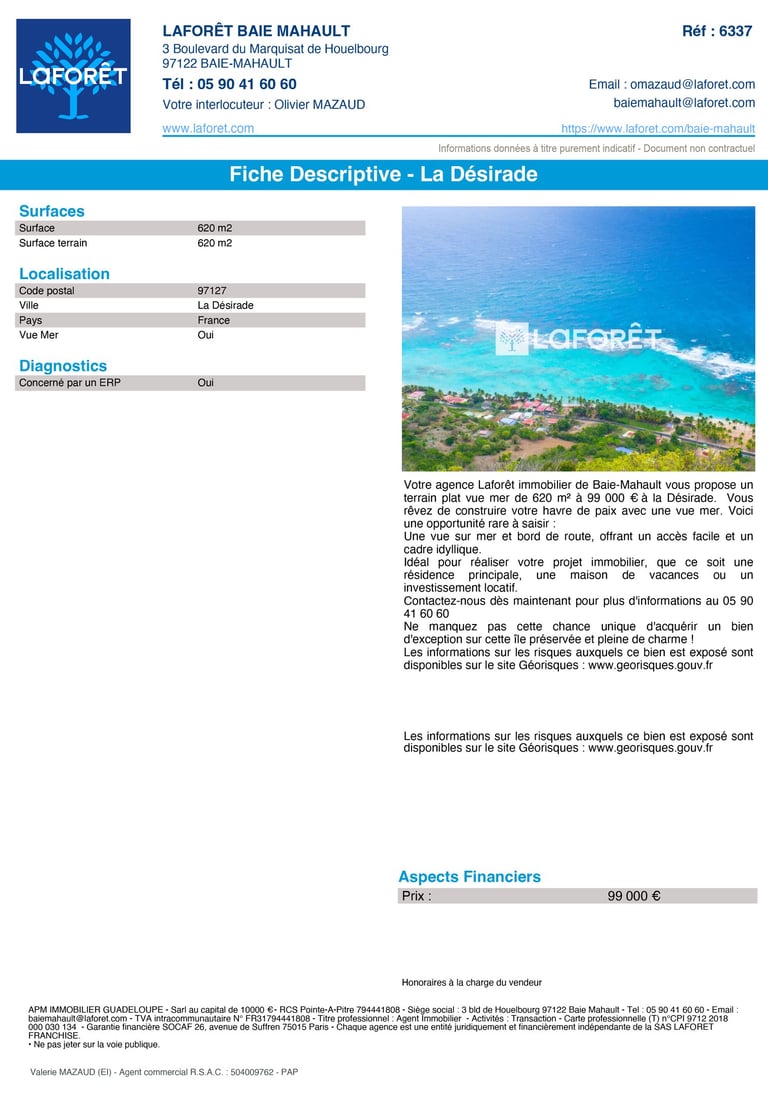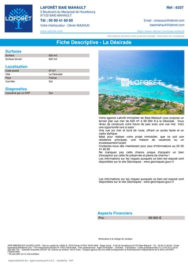 Terrain à vendre avec vue mer à La Désirade