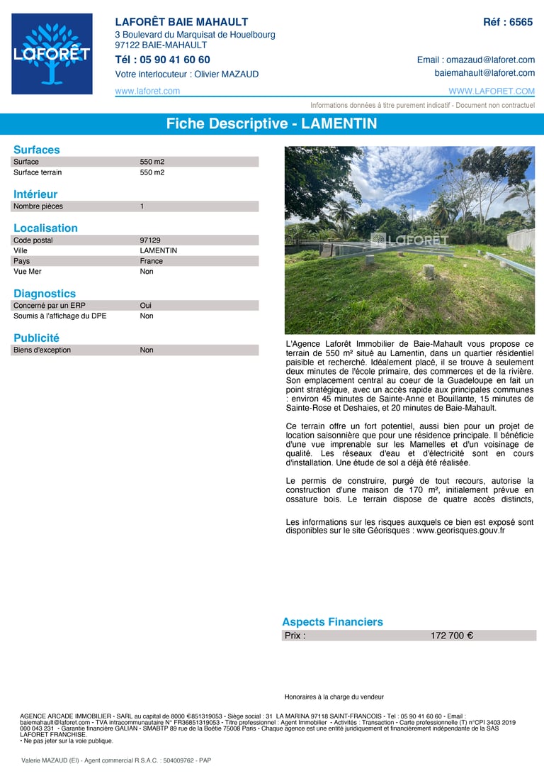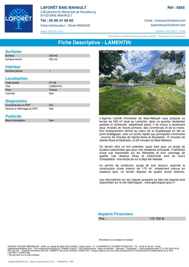 Terrain LAMENTIN 1 Pièce 550 m²