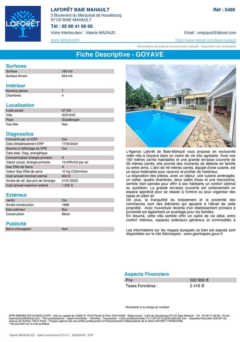 Villa de 160m² avec grande terrasse à Goyave | Agence Laforêt Baie-Mahault