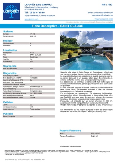 Villa SAINT CLAUDE 8 Pièces 175 m²