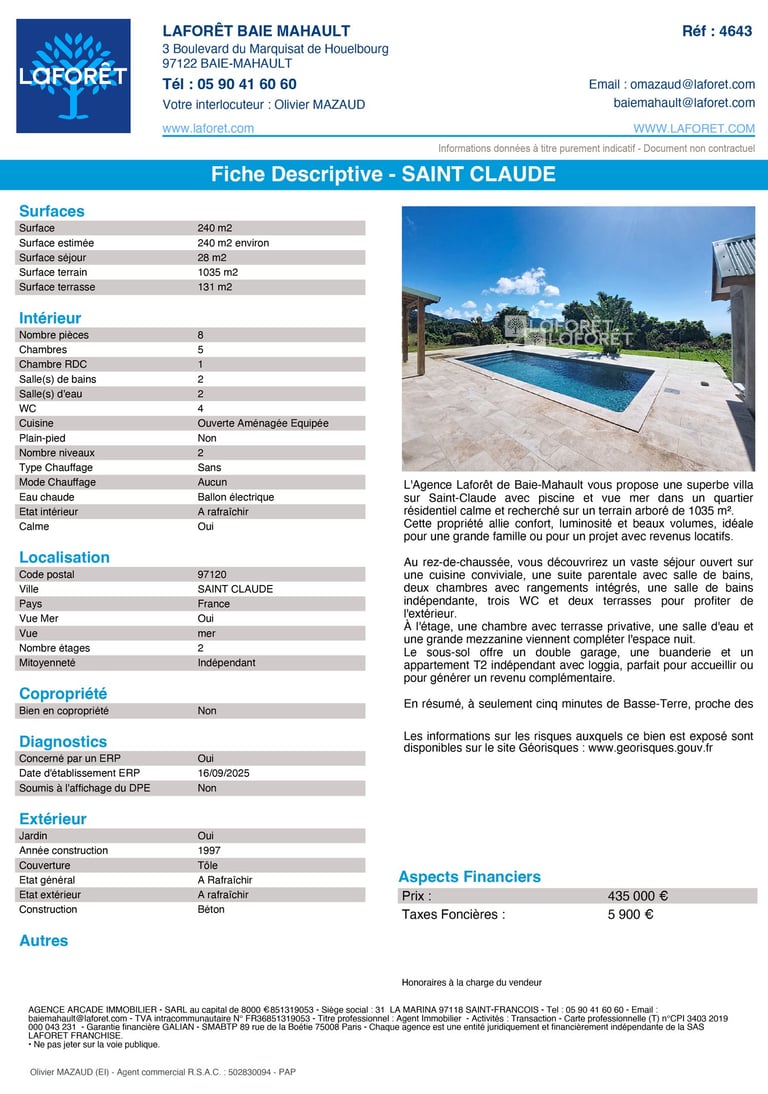 Villa SAINT CLAUDE 8 Pièces 240 m²
